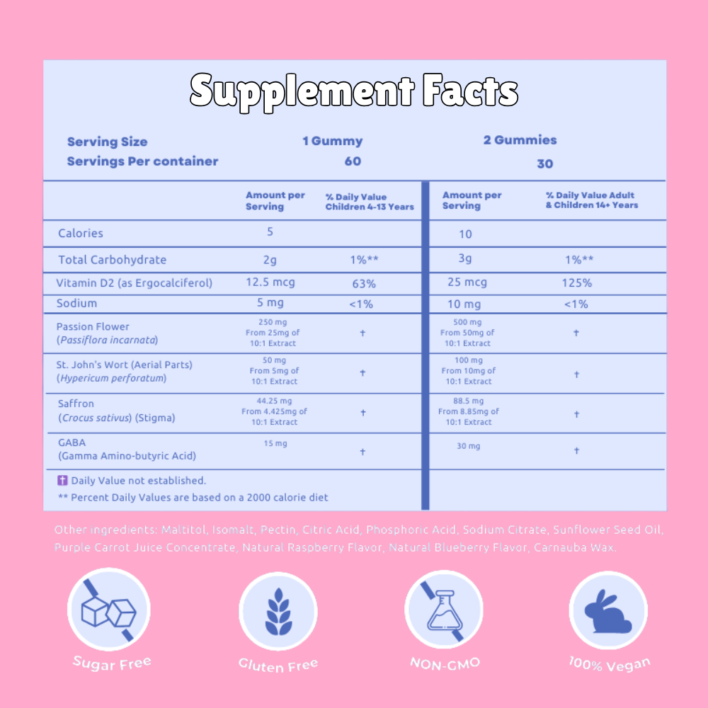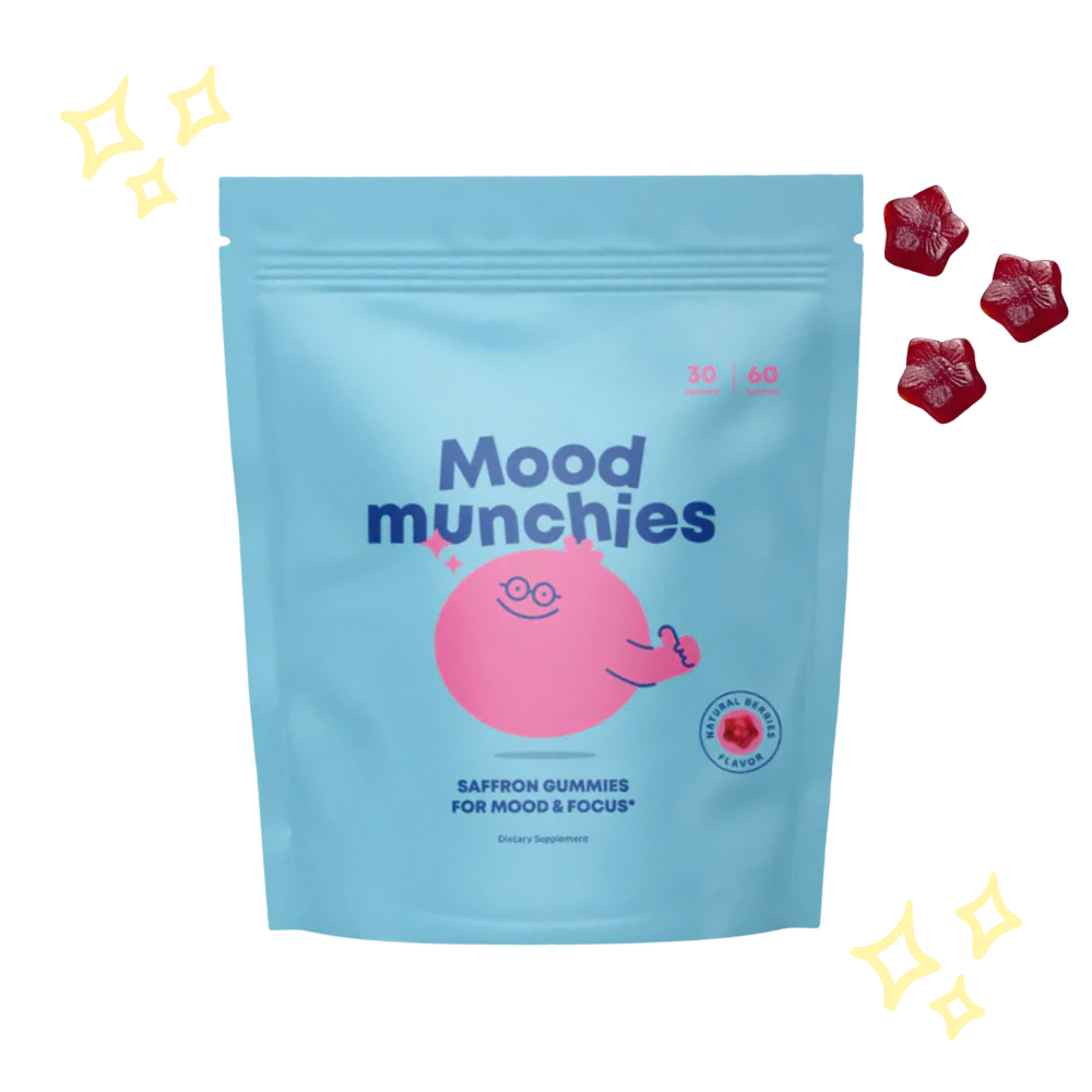 Mood Munchies – Calm Minds, Bright Futures use clinically studied saffron, calming botanicals, and brain nutrients to: